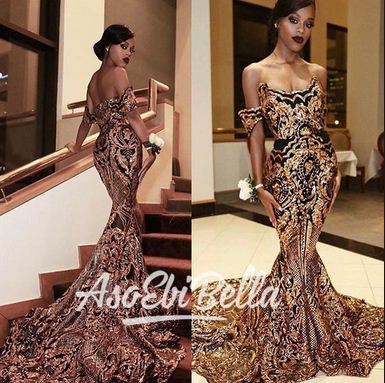 With gele, we can add a magical touch to our outfits. However, it is not a rule that we must always go for gele while using an Aso Ebi style. The Aso Ebi gowns must not be long. We can go for something in between to create a rare design for our event. The mermaid style can come with stunning designs that is different from what we know the dress to look like.